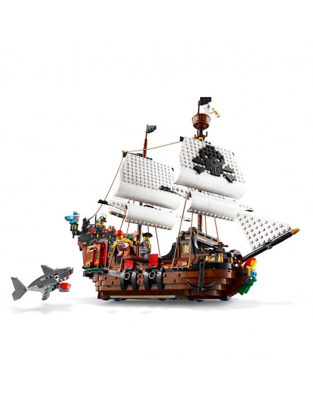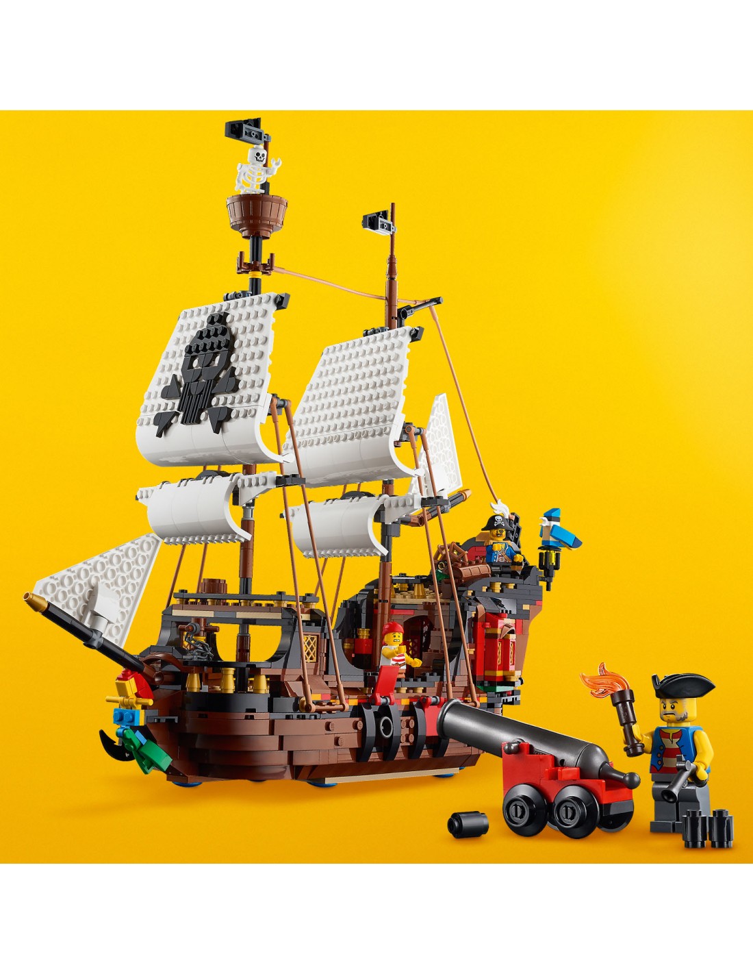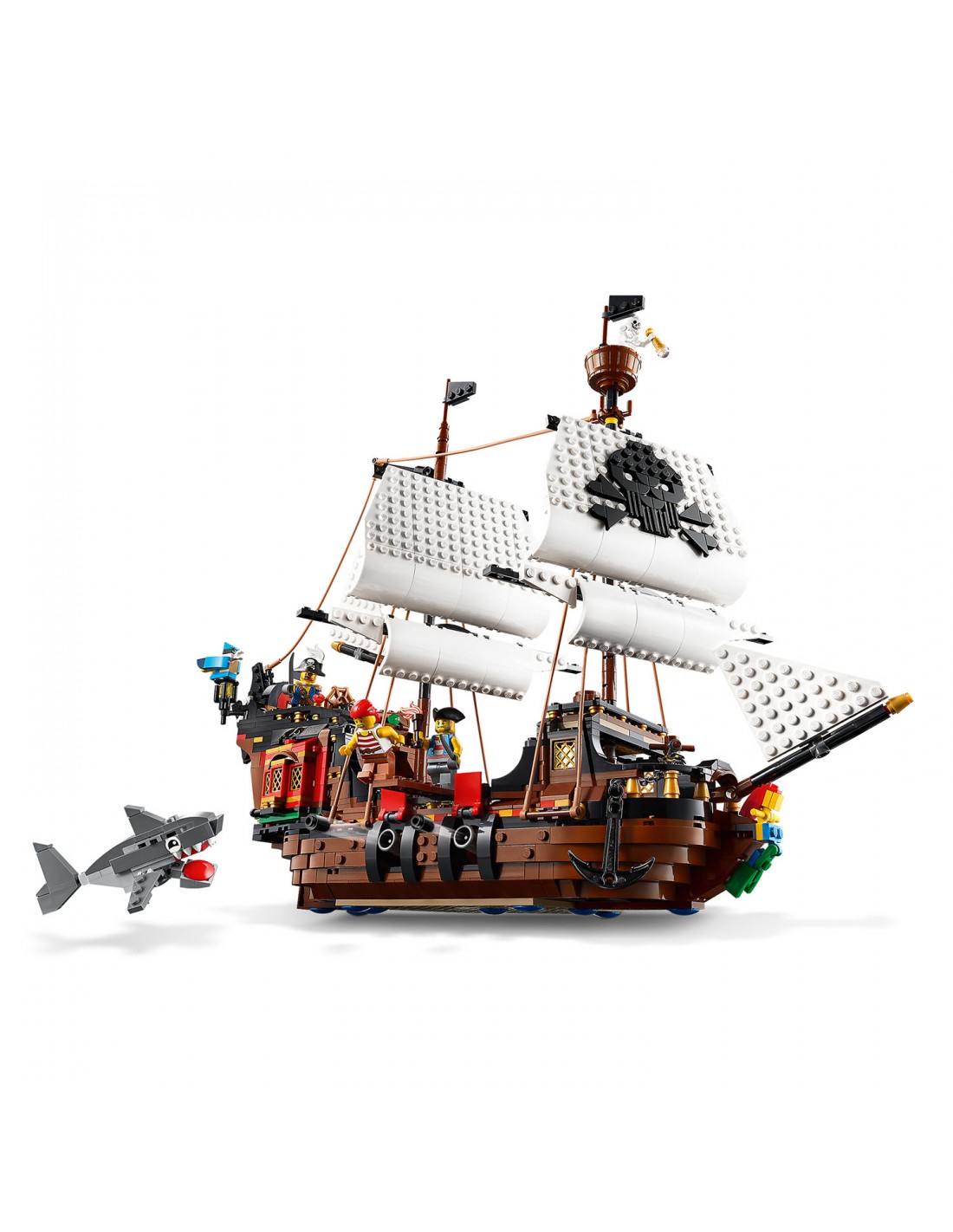 Zabierz małego pirata na wyprawę po łupy z zestawem LEGO® Creator 3 w 1 Statek piracki. Model można także przerobić na piracką karczmę lub Wyspę Czaszek.