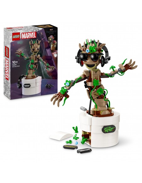 LEGO® Marvel Tańczący Groot (76297) to figurka z filmu Strażnicy Galaktyki z interaktywną funkcją tańca. To świetny prezent dla 10-latków i starszych dzieci, które są fanami Groota Marvela, superbohaterów i zabawek LEGO.