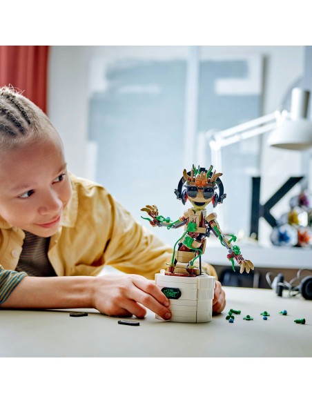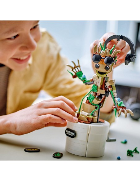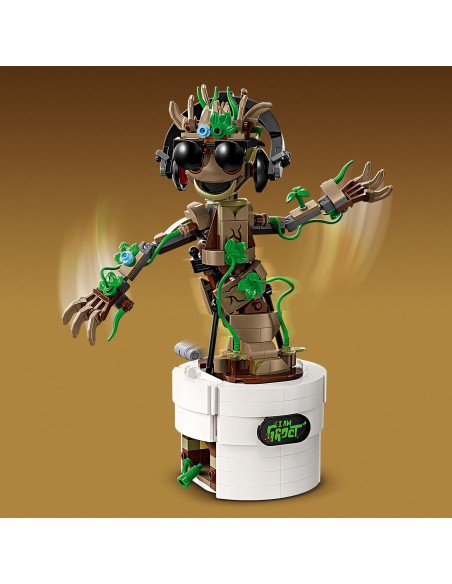 Ten zestaw konstrukcyjny obejmuje figurkę Groota z ruchomą głową i ramionami. Po przekręceniu uchwytu z tyłu doniczki Groot zaczyna tańczyć. Figurkę można spersonalizować, dodając liście, słuchawki i okulary przeciwsłoneczne. Ponadto dzieci mogą ozdobić doniczkę, przyczepiając z przodu jedną z trzech różnych tabliczek z napisem (w tym jedną związaną z serialem Ja jestem Groot). Wszystkie te akcesoria można przechowywać w schowku w doniczce. Budowanie urozmaica aplikacja LEGO Builder, w której można powiększać i obracać modele w 3D oraz śledzić postępy.