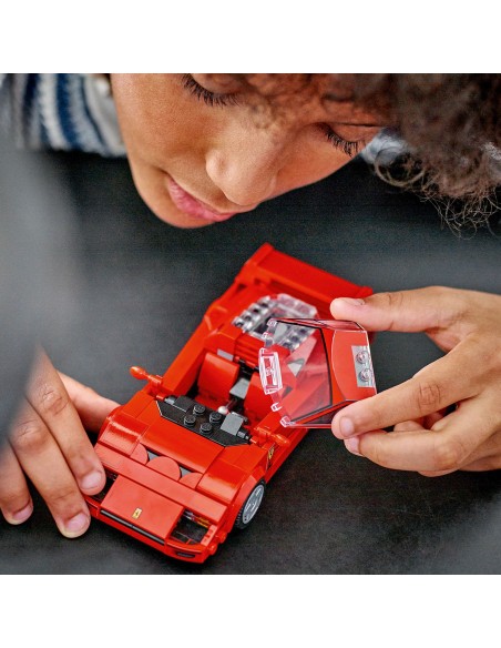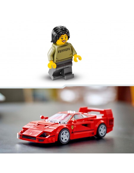 Ferrari posiada charakterystyczny dla F40 tylny spojler, maskę, rury wydechowe, felgi, elementy wlotu powietrza oraz wnętrze z deską rozdzielczą, hamulcem ręcznym, dźwignią zmiany biegów, czerwonymi fotelami i kierownicą. W zestawie jest także minifigurka kierowcy Ferrari, którą dzieci mogą posadzić za kierownicą.