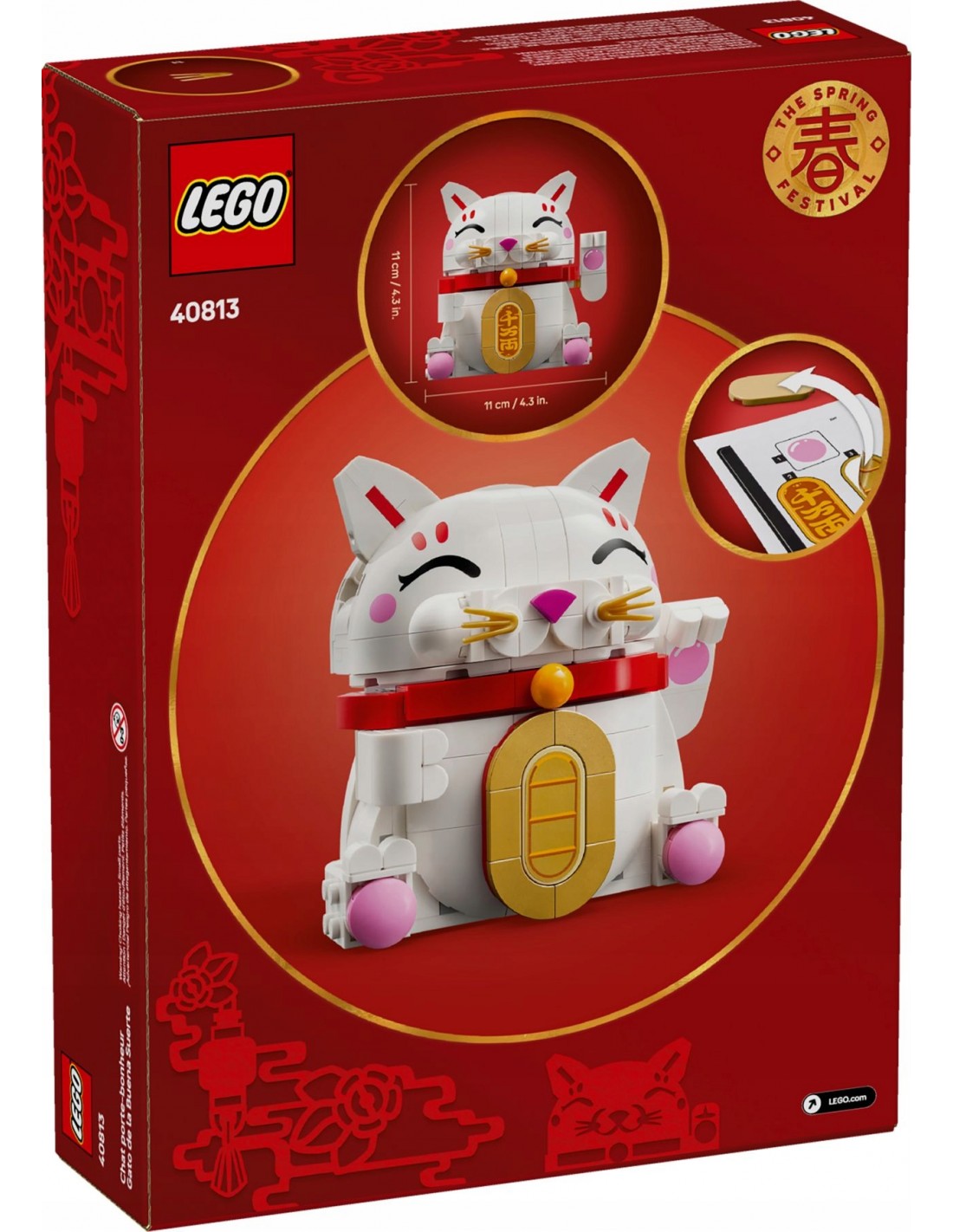 - Wymiary — zestaw składa się z 280 elementów, a figurka kota szczęścia ma 11 cm wysokości