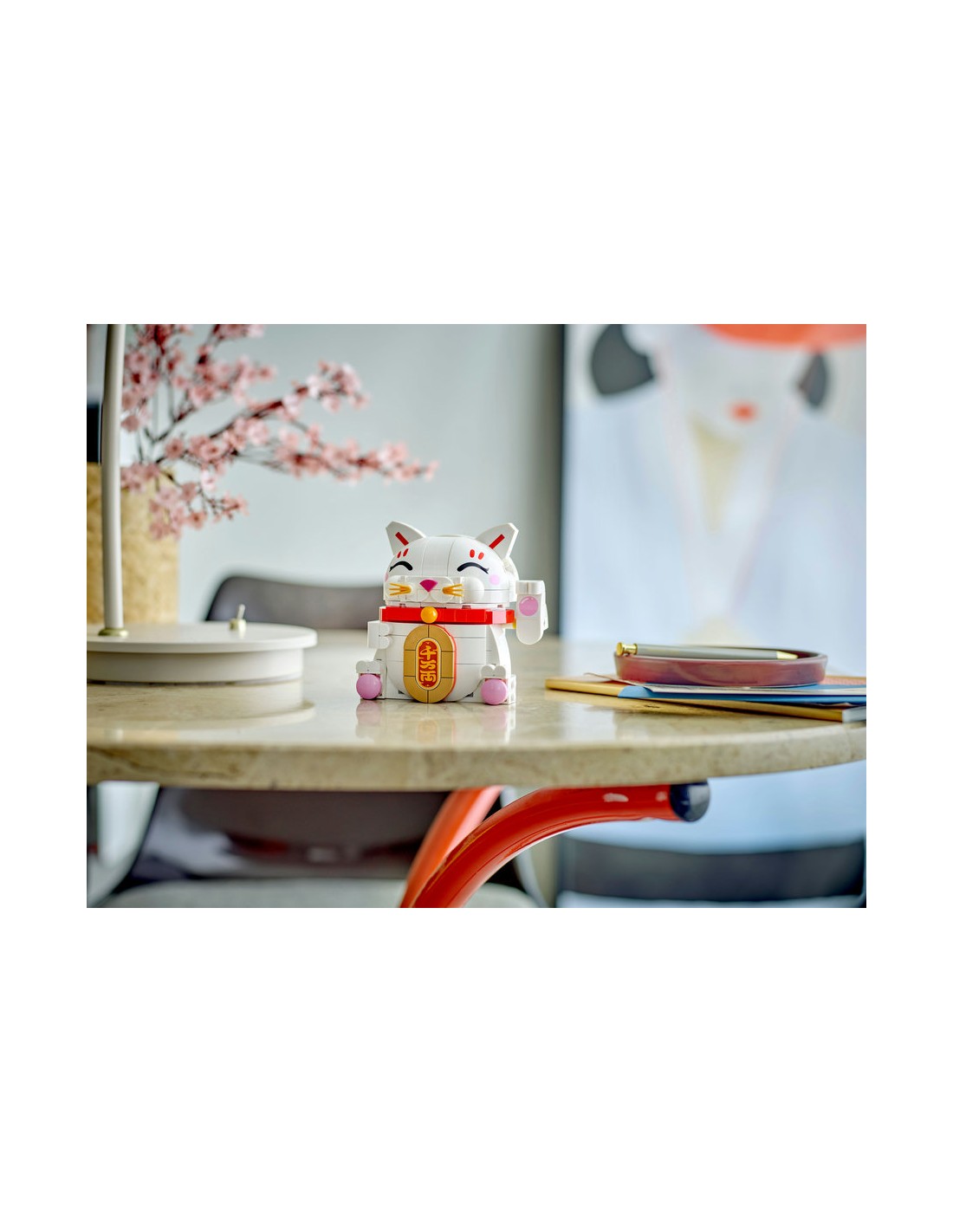 - Ozdoba przynosząca szczęście — ten ciekawy zestaw konstrukcyjny LEGO® Japoński kot szczęścia stanowi przyciągającą wzrok ozdobę, która wedle wierzeń przynosi właścicielowi szczęście i pomyślność
