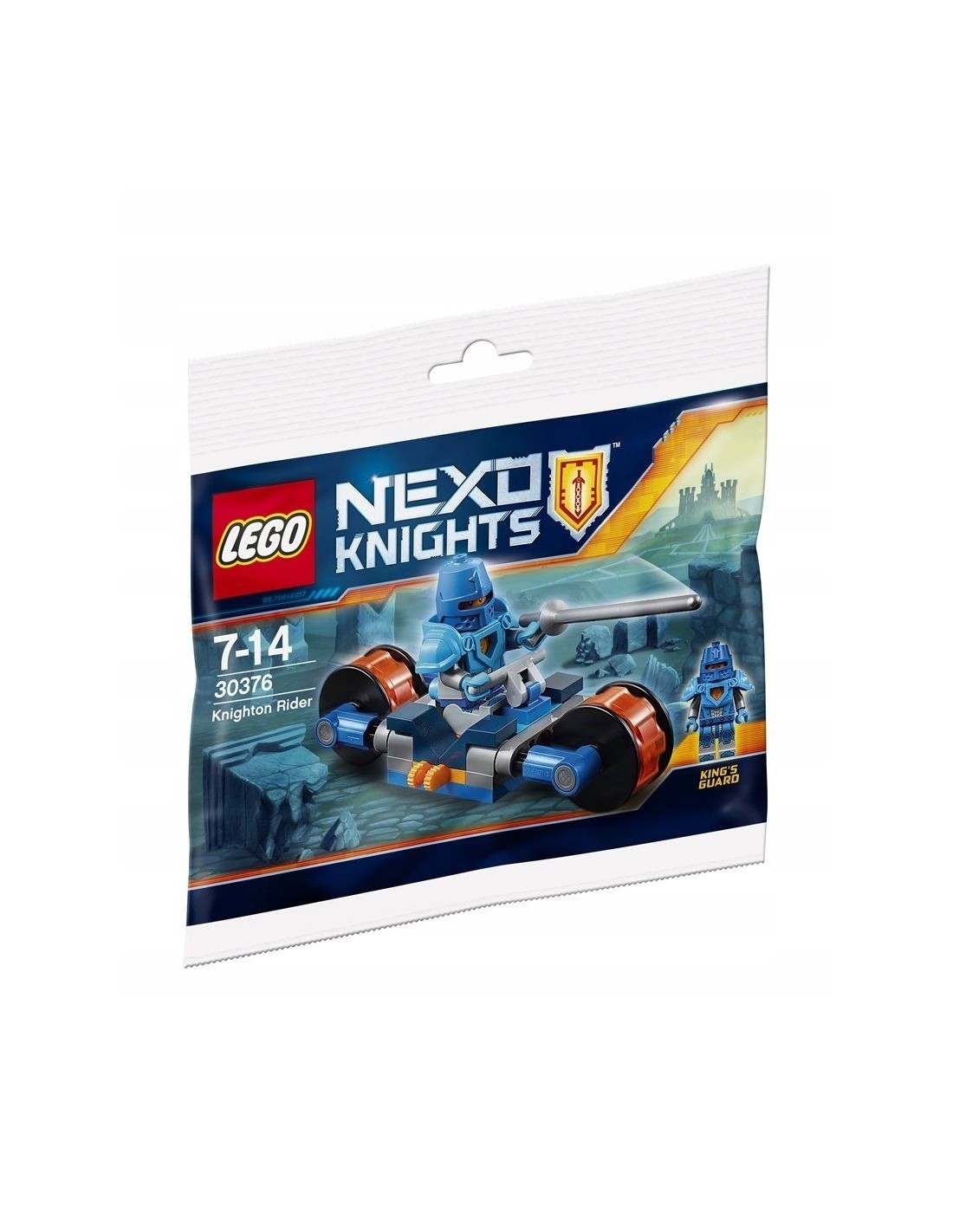 Zestaw klocków LEGO Nexo Knighton Rider 30376 pochodzi z 2017 roku. Zawiera 42 elementy, w tym minifigurkę rycerza królewskiej ochrony pochodzącą z serialu Nexo Knight wraz ze zbroją oraz kopią a także elementy do budowy pojazdu. Zabawka przeznaczona dla dzieci powyżej 7. roku życia.